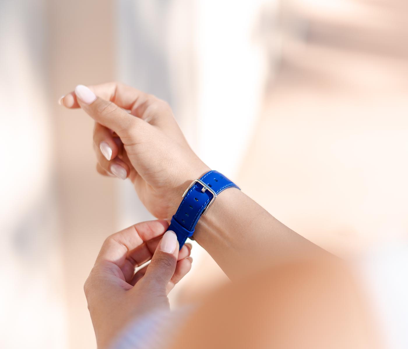 Blueberry Summer, the perfect leather band to wear in any occasion during this summer, defined by a blue soft surface on top, and the recognizable beauty of our Nappa leather entirely made in Italy by our artisans.