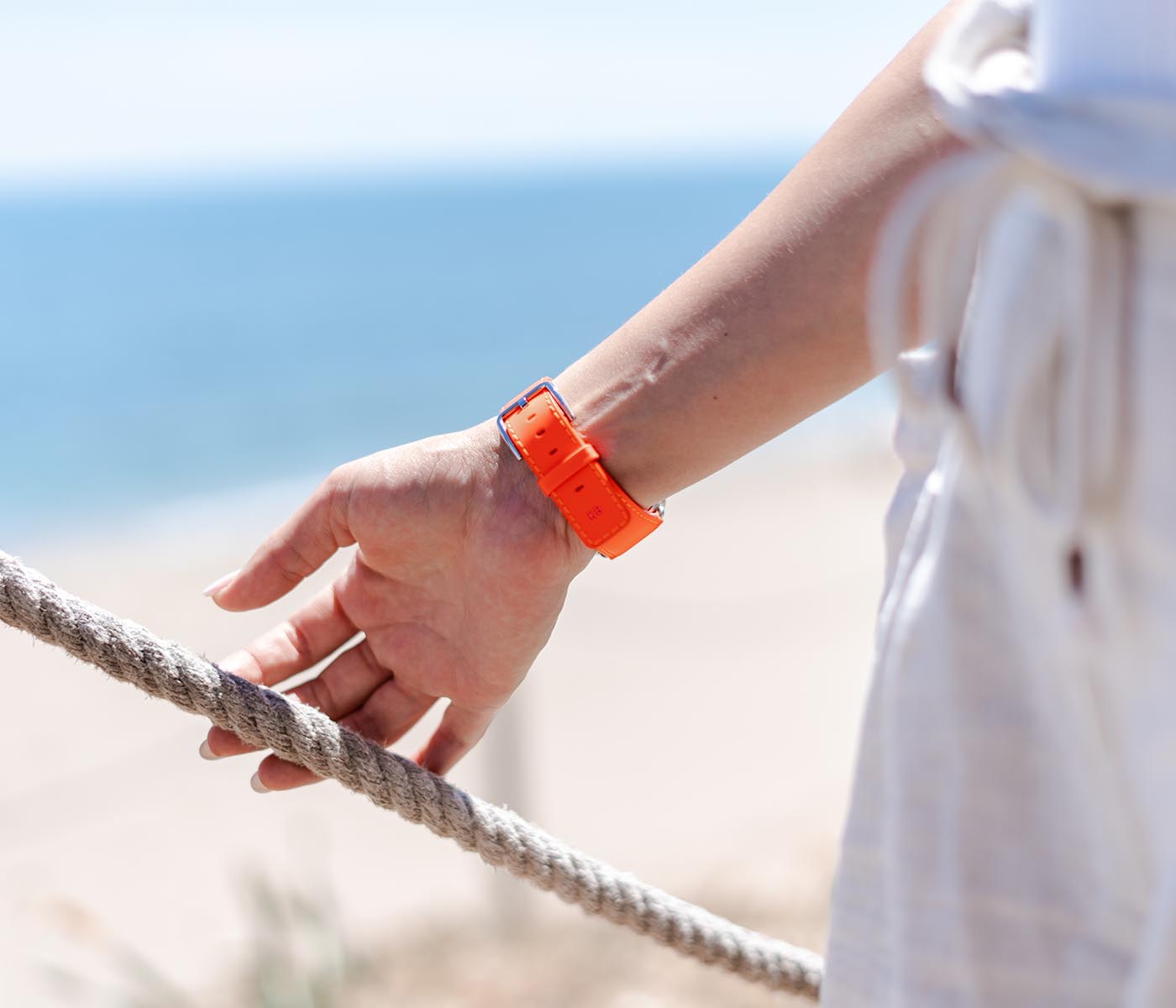 Flaming Mango, is definitely a version of the Fluo collection bands, that is perfect to be worn on a tanned skin, while you are enjoying your vacations. An orange bright nuance, that communicates your summer vibes needs.