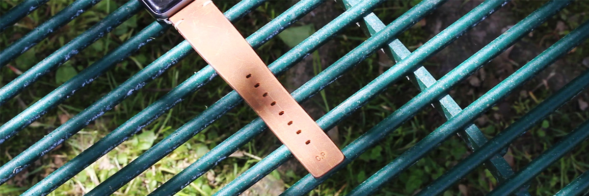 Home » Leather Apple Watch Bands » Customize a handmade in Italy leather accessory? Yes, you can! » Smoked-walnut-light-brown-Apple-watch-vintage-band-with-monogram-blogpost