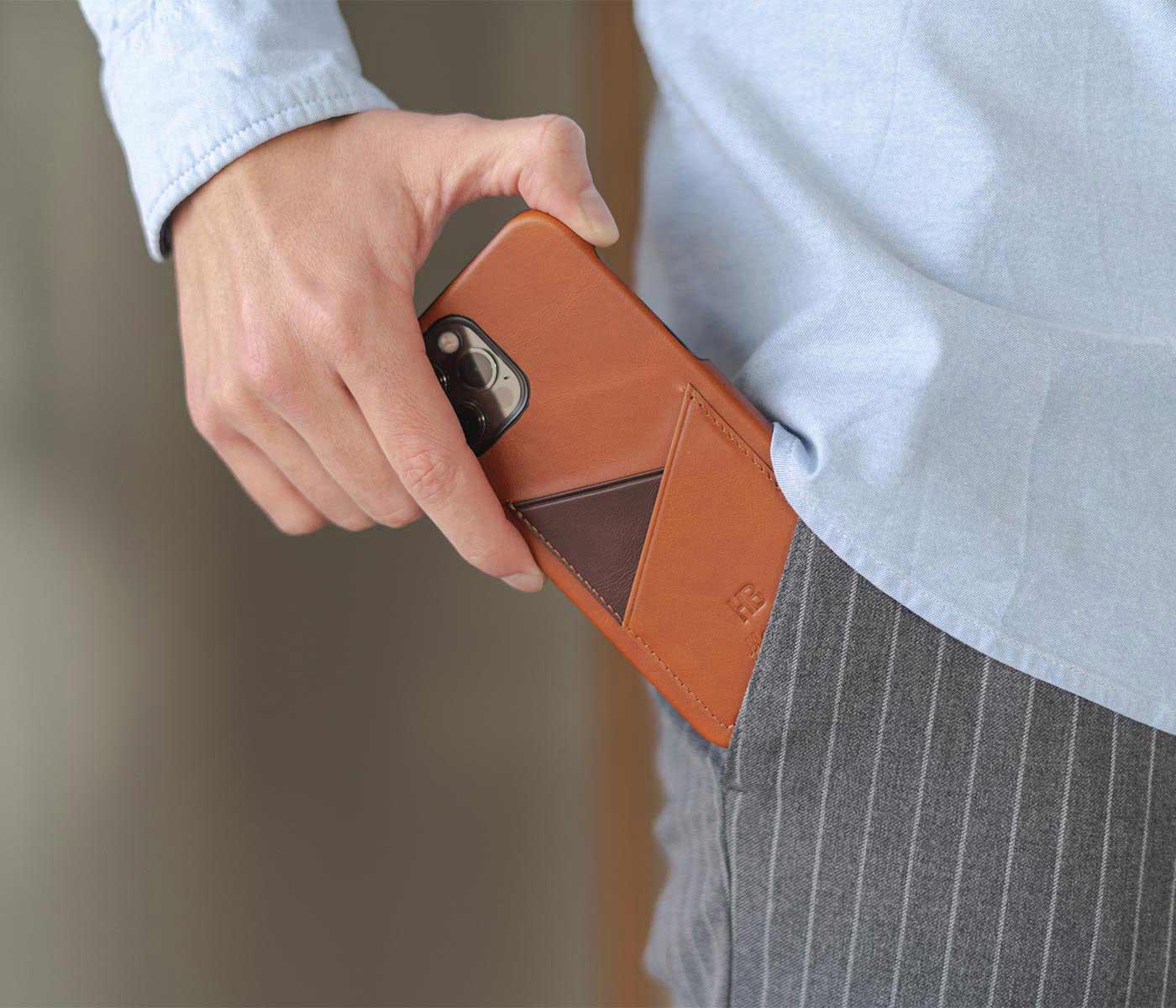 Avvolgi il tuo iPhone in una pelle morbida dal colore caldo ed elegante, un marrone chiaro con una tasca più scura che ricorda la fragranza del legno della campagna italiana. La tasca è perfetta per ospitare le tue carte più importanti, un accessorio nell’accessorio che dà valore e unicità al prodotto. Le cover per iPhone in pelle di alta qualità sono progettate per adattarsi alle tecnologie di ricarica wireless e ti consentono quindi di non toglierla quando devi caricare il tuo iPhone. Sono disegnate per proteggere il telefono dalle cadute più violente. Barrel è disponibile per iPhone 12 Pro Max | 12 Pro | 12 Mini | 11 Pro Max|11 Pro| 11 |Xs Max | Xr