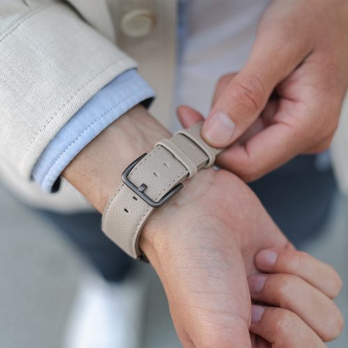 Benvenuti nell’angolo della moda vegana. Rimarrai colpito da come questi cinturini per Apple Watch realizzati con pelle di mela riciclata possano essere facilmente scambiati per pelle. La superficie morbida al tatto ma solida di questi cinturini è molto speciale e specificamente progettata per offrire un comfort assoluto al polso, assicurando al contempo un perfetto abbinamento di vari stili, da quelli più eleganti a quelli più casual. Compatibile con AW con cassa piccola 38/40/41 mm e quella grande 42/44/45/49 mm e, adatto alla versione 8,ULTRA & SE 7|6| 5|4|3|2|1.