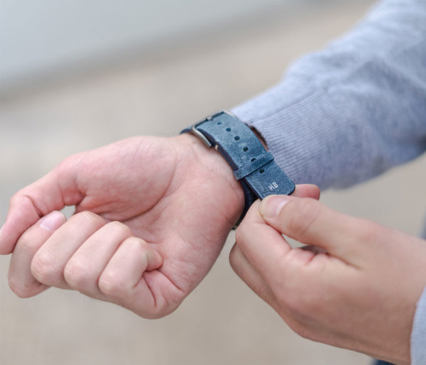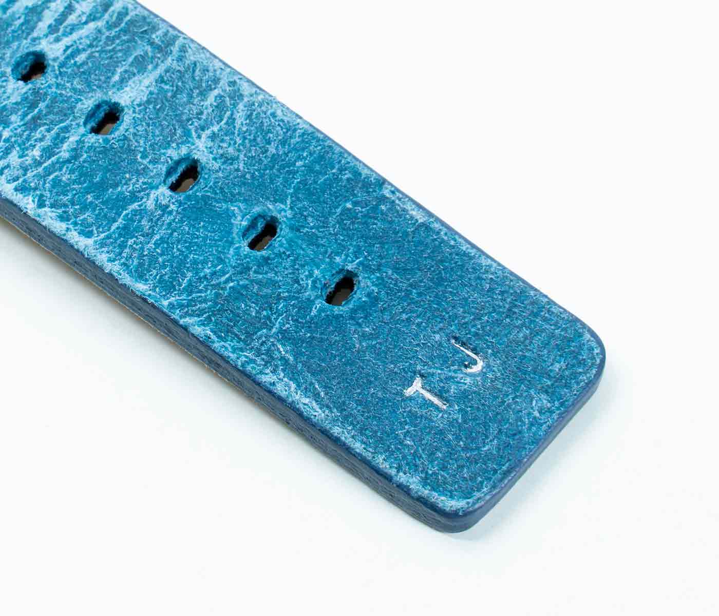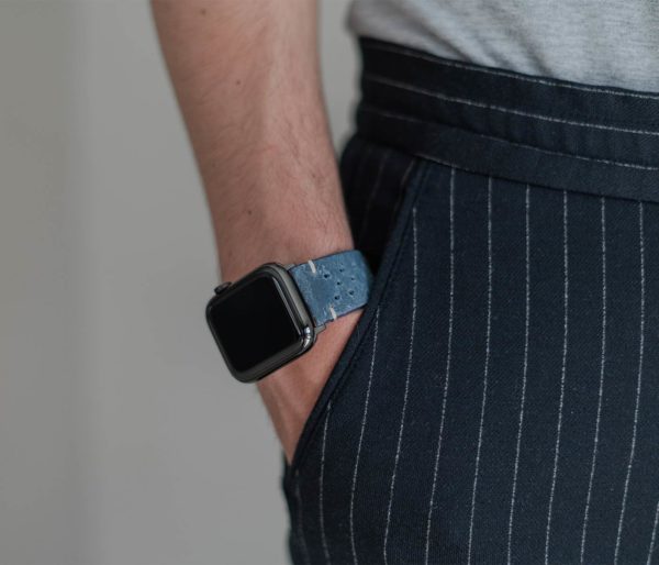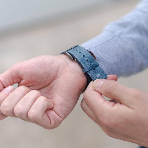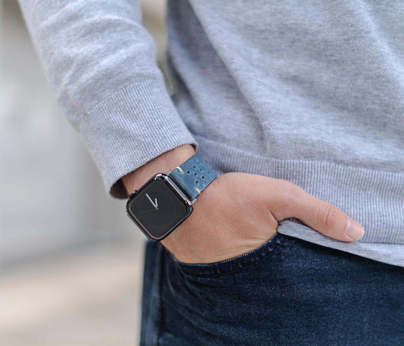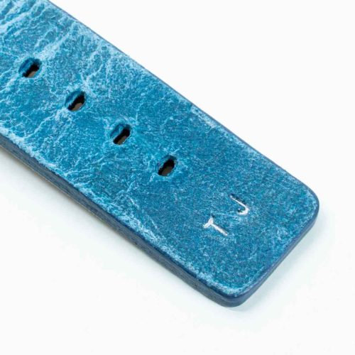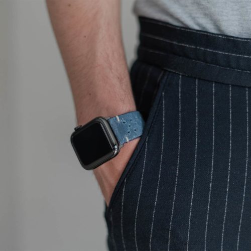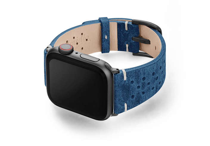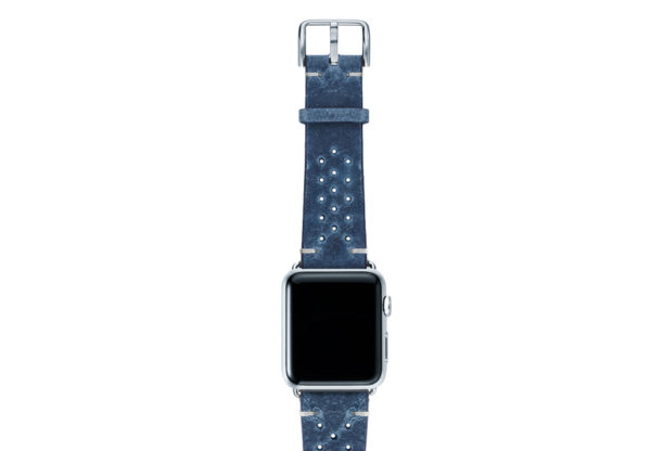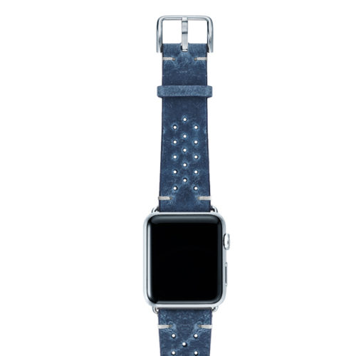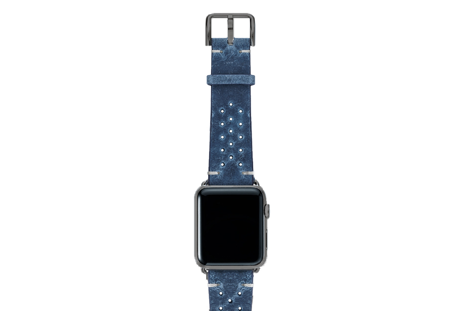 Nei tempi duri non c’e’ bisogno di ulteriore aggressività per risolvere i problemi ma, essere pazienti e lucidi, occorre Respirare.  Ogni cosa andrà bene con al polso questo cinturino vintage da un colore blu sfumato caratteristico della pelle di vitello invecchiato impreziosita da 30 fori per ridurre il sudore al contatto. Disponibile per AW con cassa piccola 38/40/41 mm e quella grande 42/44/45/49 mm, adatto a tutte le serie 8,Ultra & SE e precedenti 7|6|5| 4|3|2|1.