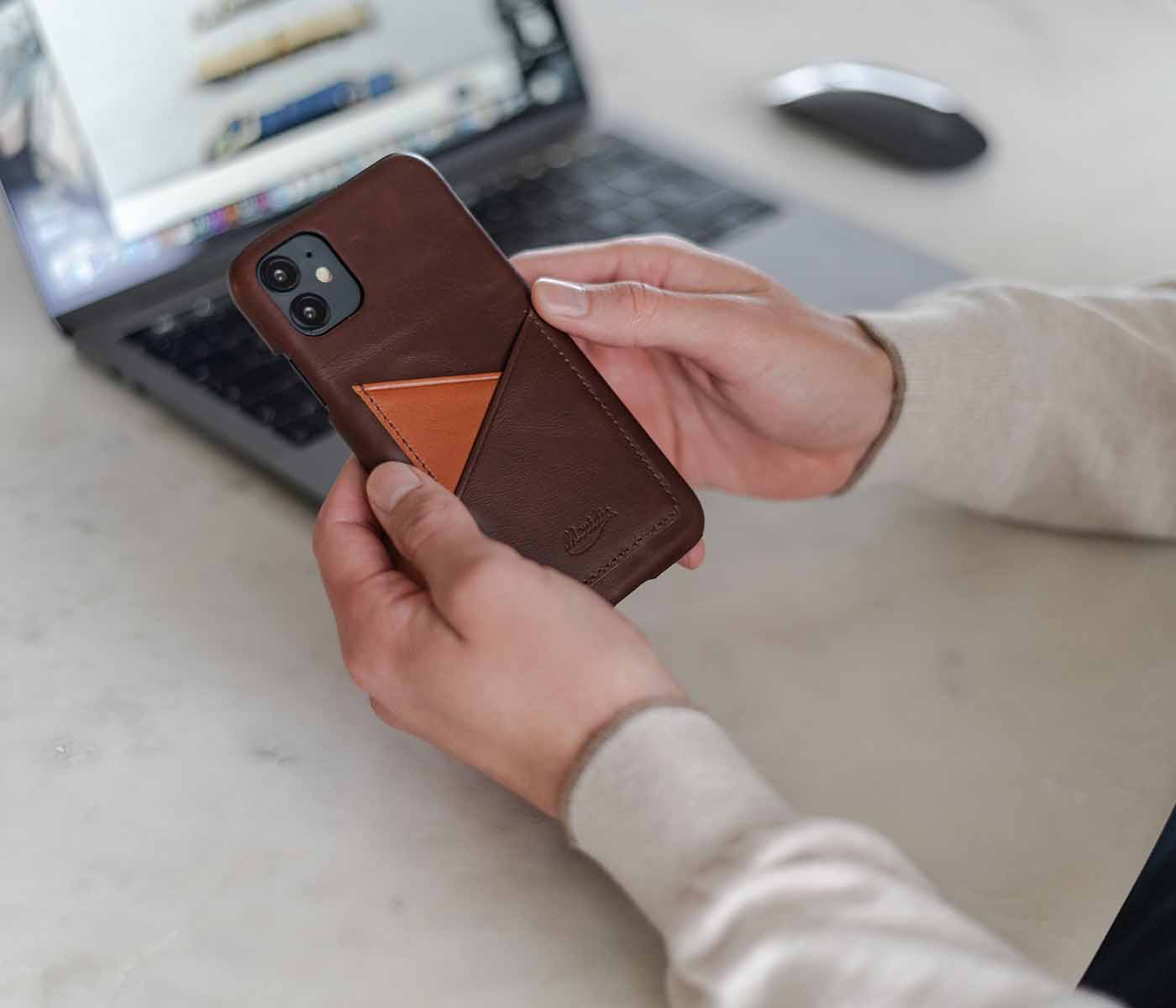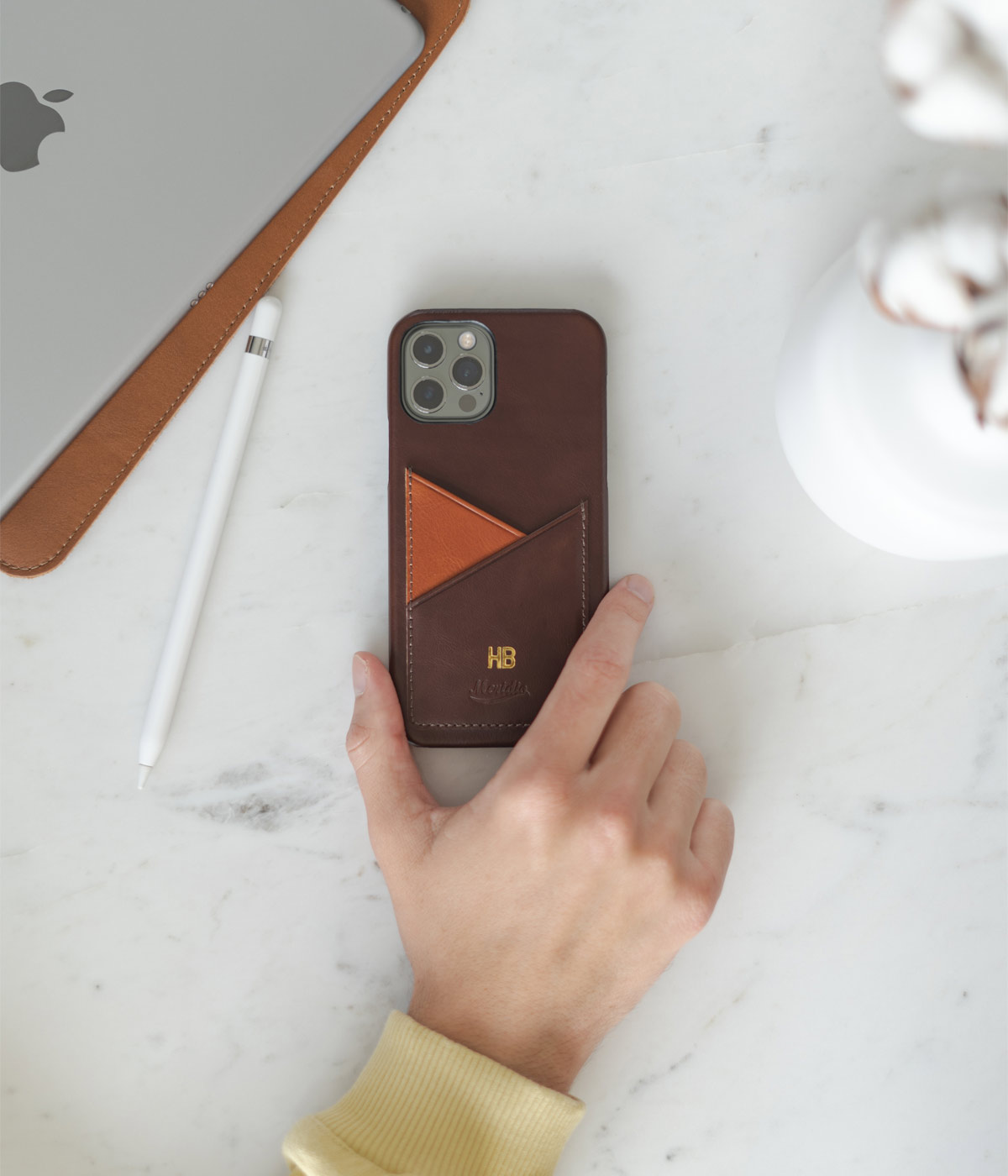 Iphone cases designed with high craftsmanship, the choice of premium leather, the treatment of natural color and attention to the finishes are the trademark of Meridio. The Cigar model is inspired by the intensity of brown tones to create a perfect cover for every outfit.The lighter brown hand-stitched pocket with a cotton finish is a comfortable container for your cards. Available for iPhone 12 Pro Max | 12 Pro | 12 Mini| 11 Pro Max| 11 Pro | 11 | Xs Max | Xr