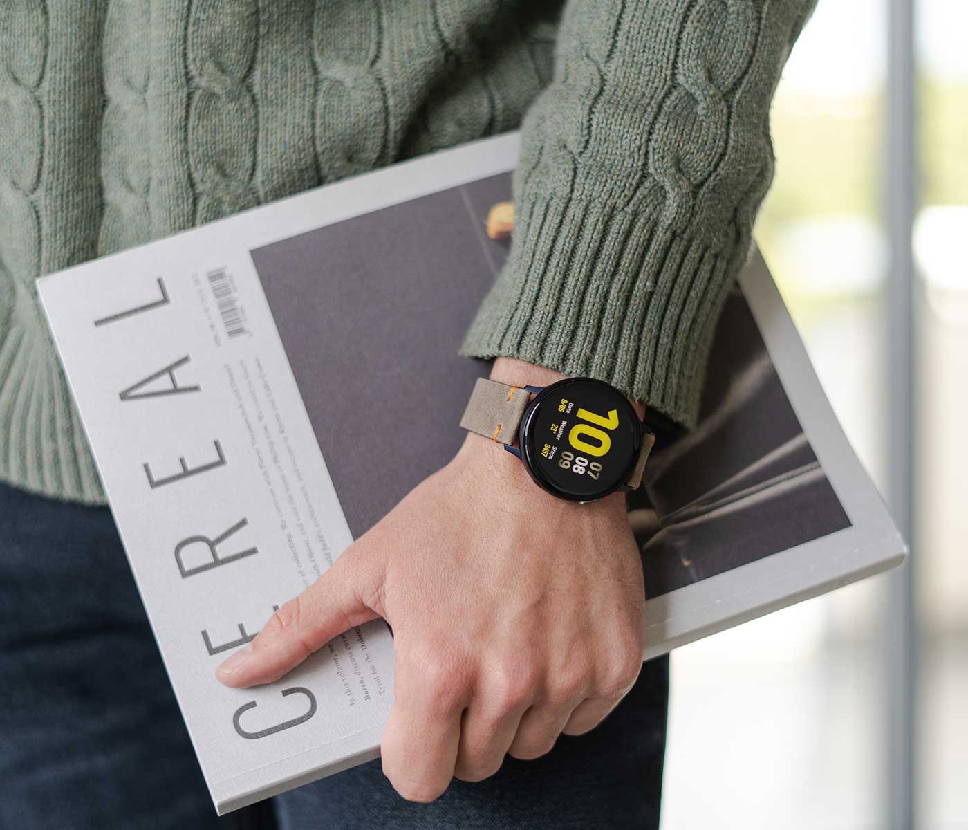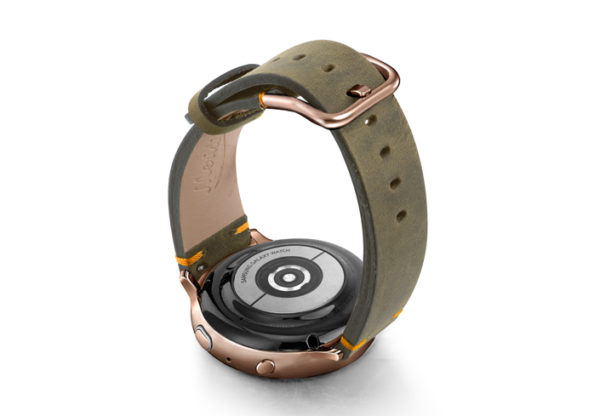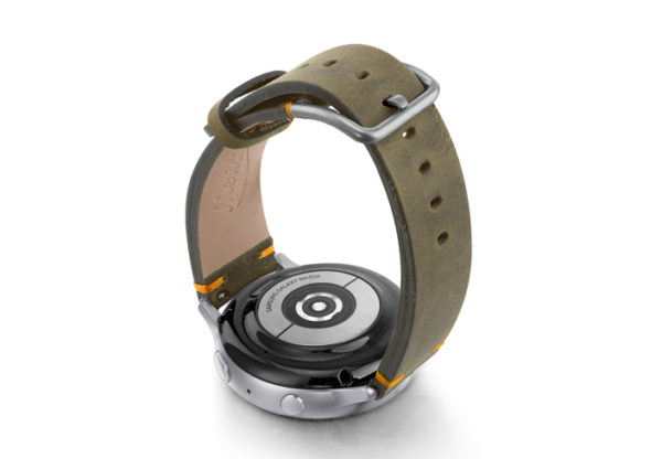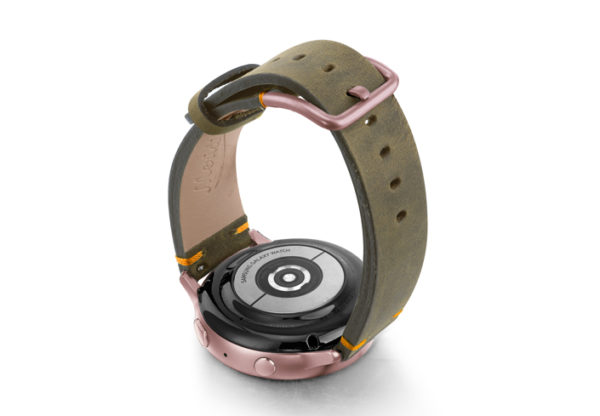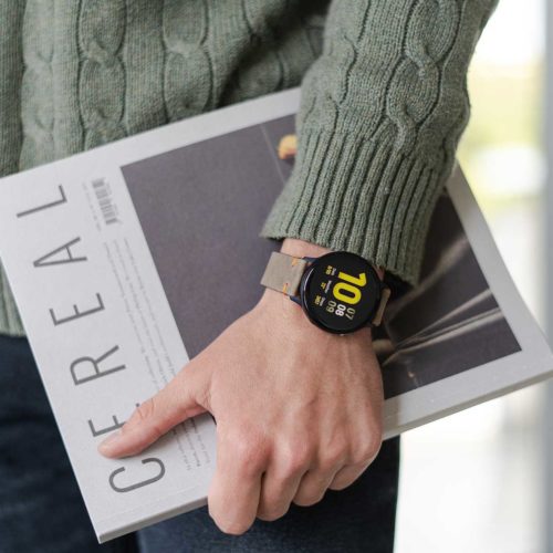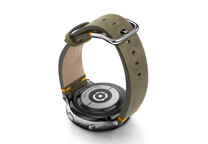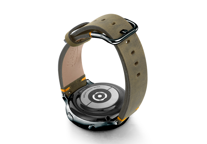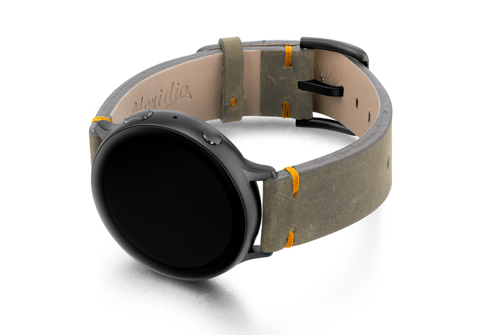 Primed with calf leather 100% Made in Italy and decorated by superior craftsmanship; Dried Herb has got everything to give your Galaxy Watch Active a premium suit for all series 5 and 4|3|2|1. Not only the discrete taupe tone and refined soft-texture design showcase its elegance but you will also have a comfortable time while wearing it