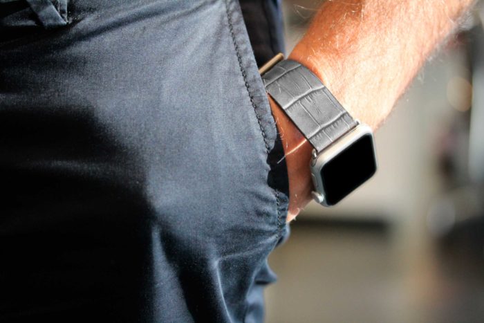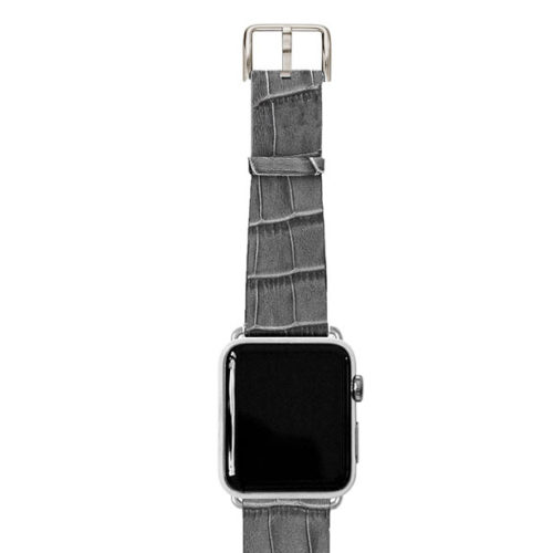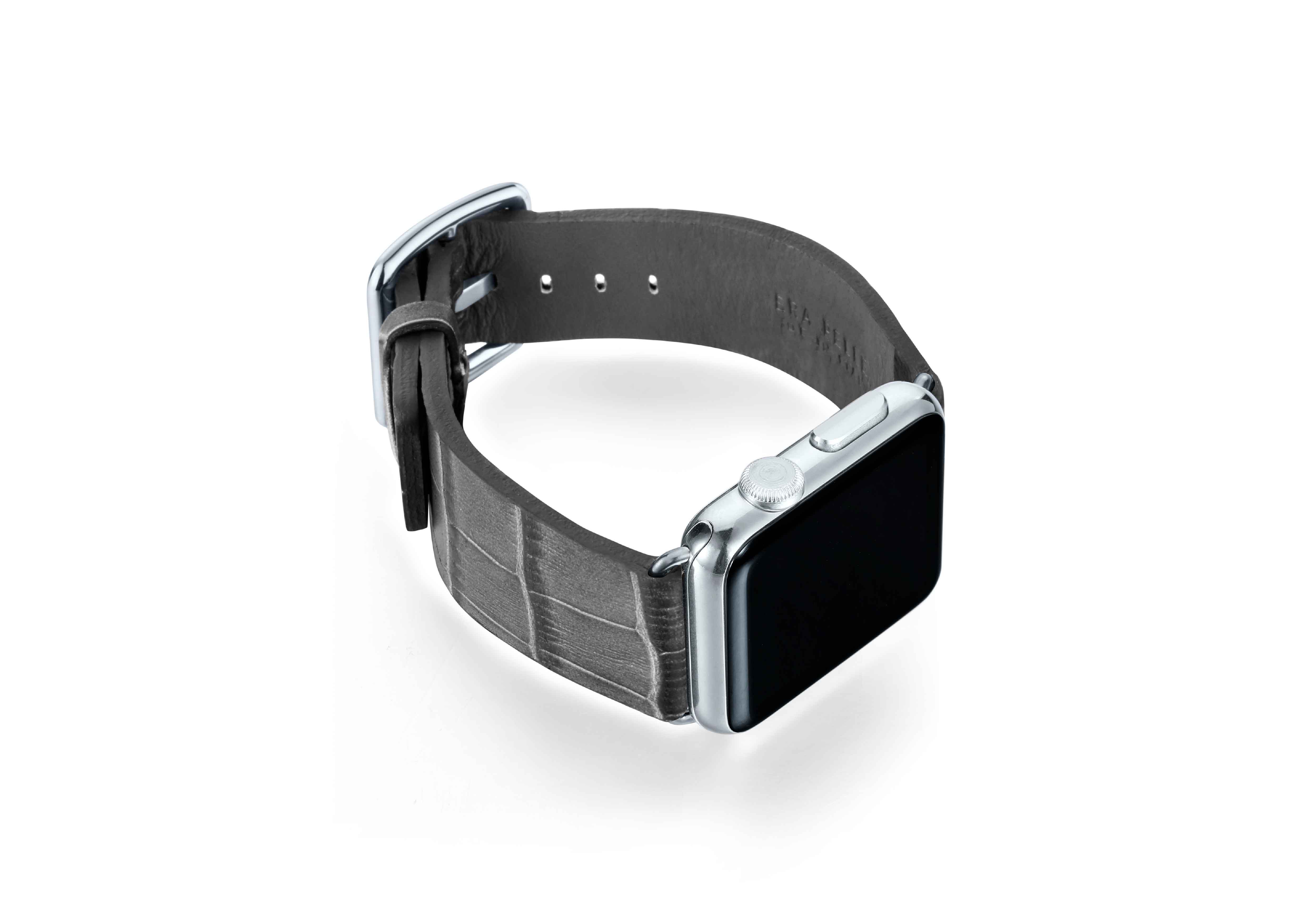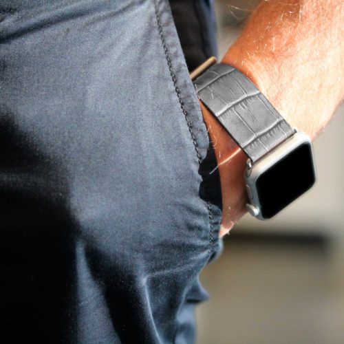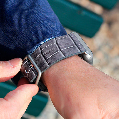Le venature grigio opaco opaca sulla pelle di vitello danno intensità al cinturino rendendolo unico e speciale e gli conferiscono uno stile urban-chic. Inizia a pensare al tuo abbigliamento da lavoro quotidiano con uno di questi fantastici accessori in pelle lavorati in una conceria italiana. Disponibile per tutti gli Apple watch, dalla nuova series 8,Ultra & SE alle precedenti 7|6|5|4|3|2|1. Compatibile con casse 42/44/45/49 mm