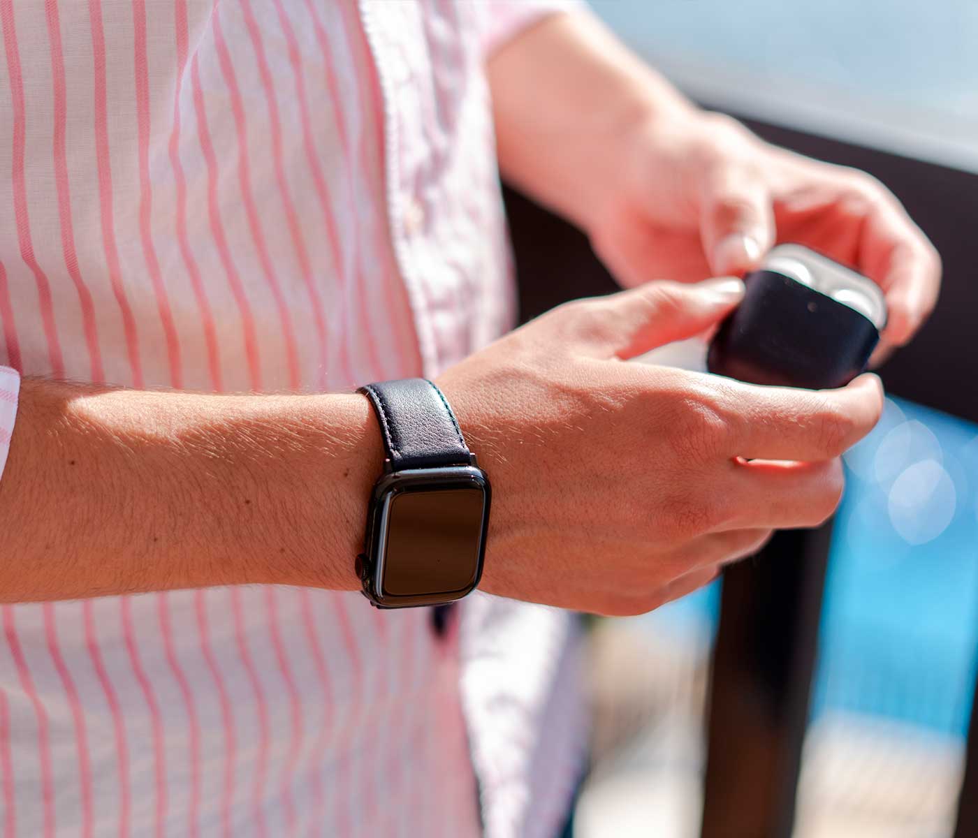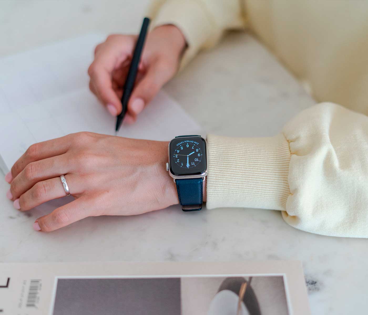 Mediterranean Blue, il cinturino in nappa realizzato da Meridio per il tuo nuovo Apple Watch Series 8,ULTRA & SE e precedenti 7|6|5|4|3|2|1 è perfetto per distinguersi senza esagerare. Compatibile con casse di dimensioni 38/40/41 e quelle grandi 42/44/45/49 mm