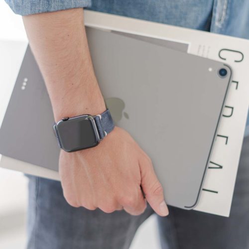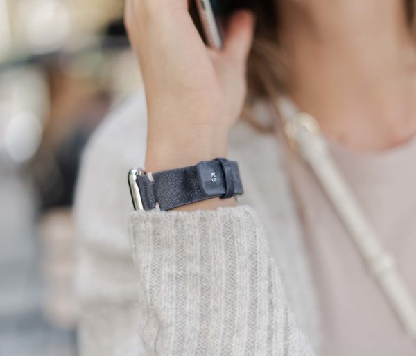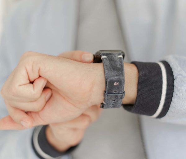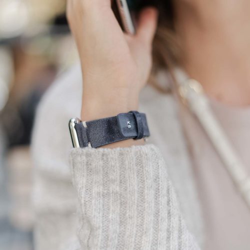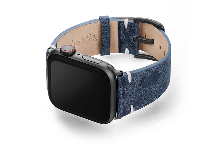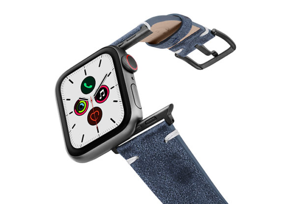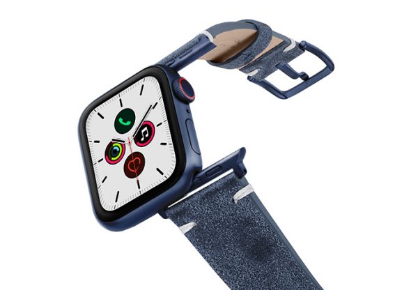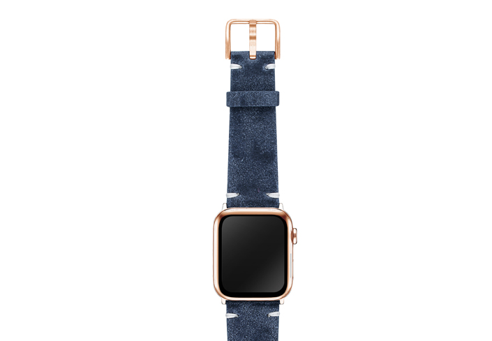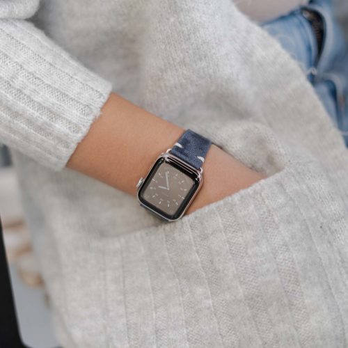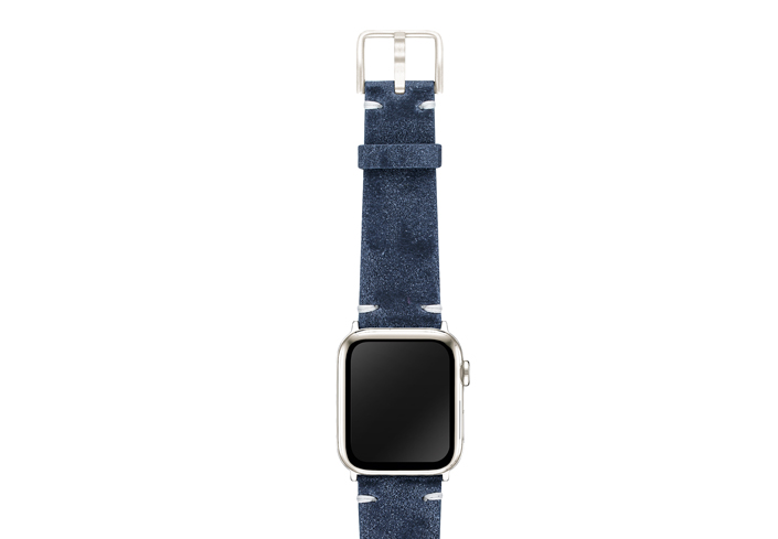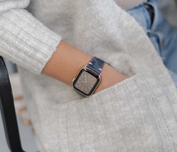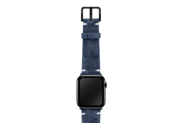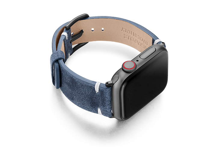 Cinturino in pelle di vitello per Apple watch serie 8,ULTRA & SE e precedenti versioni con finiture in cotone la cui colorazione è ispirata al colore della Luna. Disponibile per casse 38/40/41 | 42/44/45/49 mm