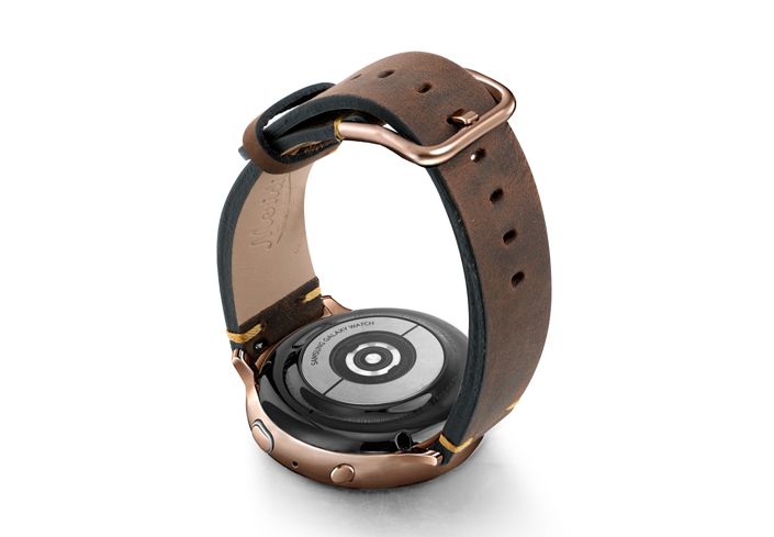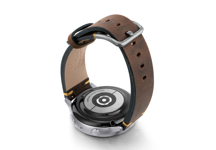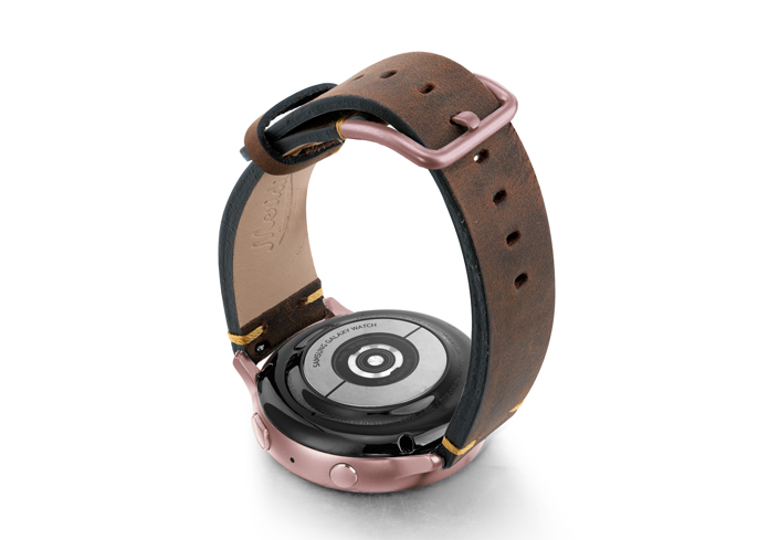 Old Brown, il cinturino in pelle marrone di Meridio, è vintage in ogni senso: profuma di storia per dare uno stile italiano al tuo Galaxy Watch Active series 2 |1