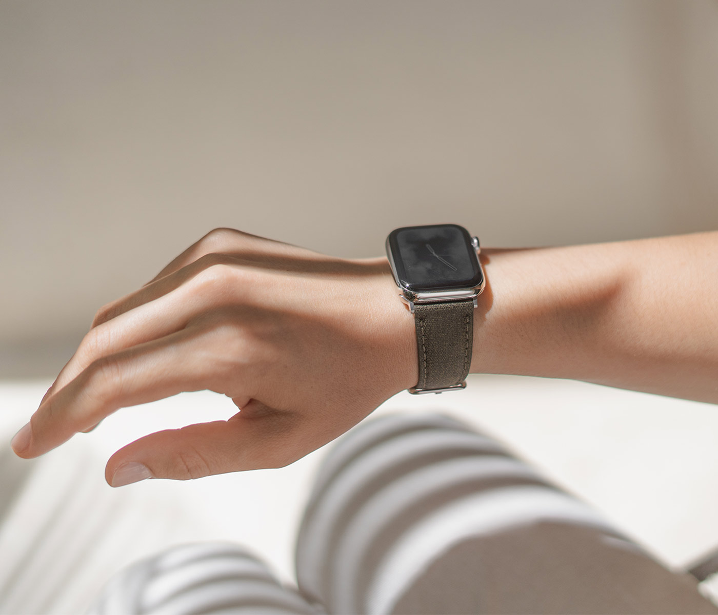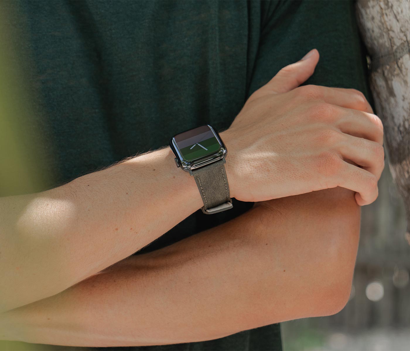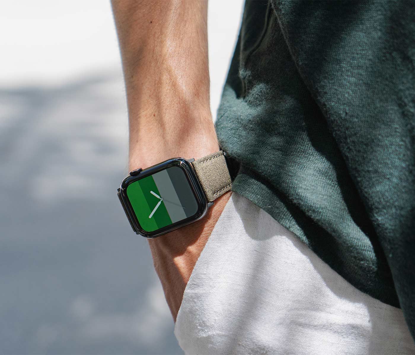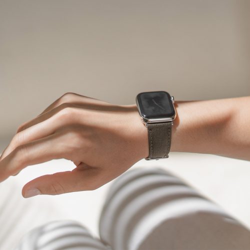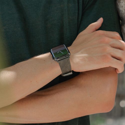 Il cinturino ha un colore verde militare perfetto per la uaglio’ primavera/estate. E’ realizzato con tessuti di cotone riciclato, compatibile per le serie 8, SE e versioni precedenti. La tela di alta qualità è stata trattata con cera ad alte prestazioni per conferire al prodotto una maggiore durata e comfort. Presenta un design con doppio passante ed è disponibile per casse di  AW 38/40/41