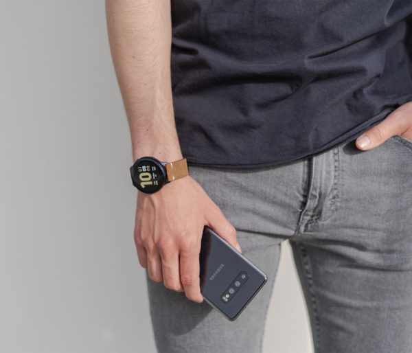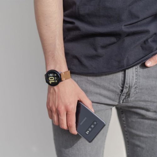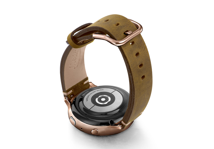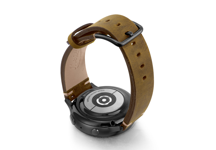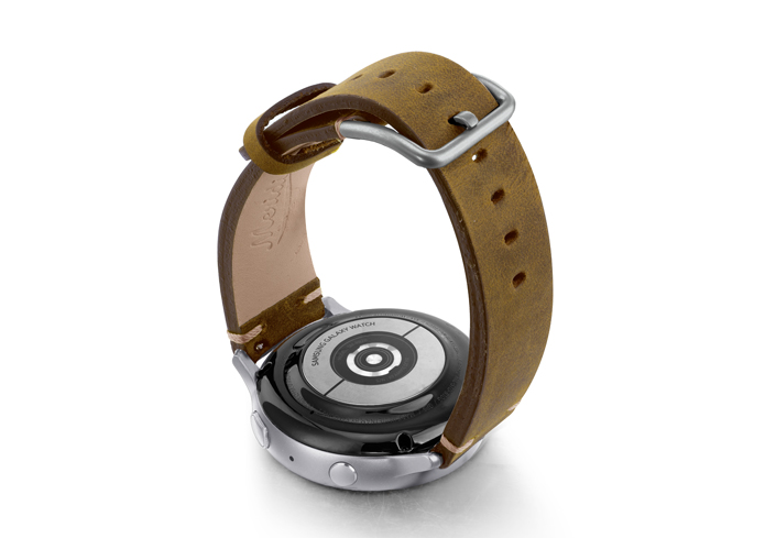 Smoked Walnut, il cinturino in tonalità marrone della serie Vintage di Meridio, ideale per il tuo Galaxy watch active Serie 2|1, morbido al tatto e caldo alla vista