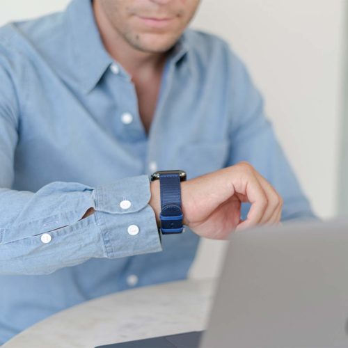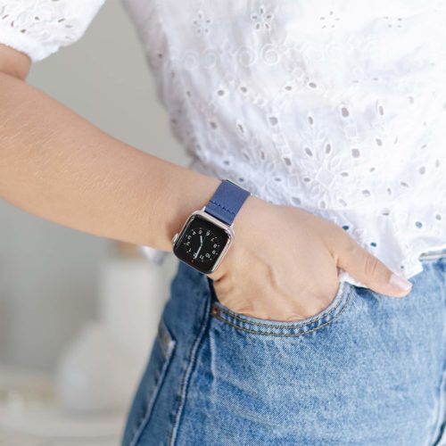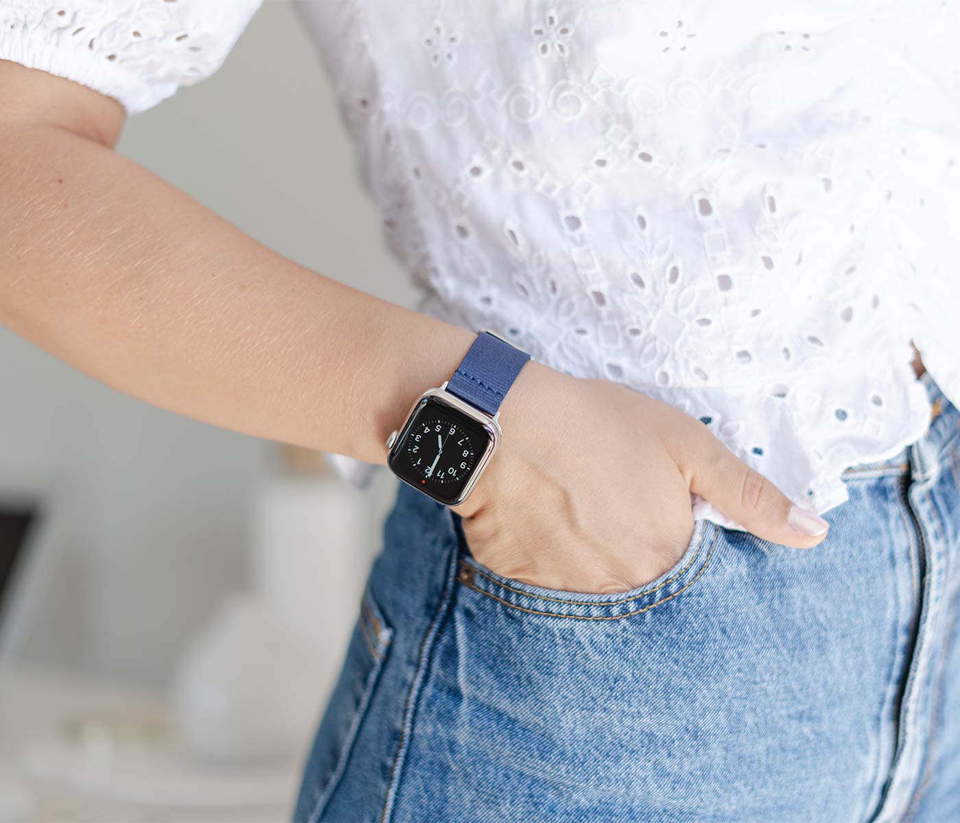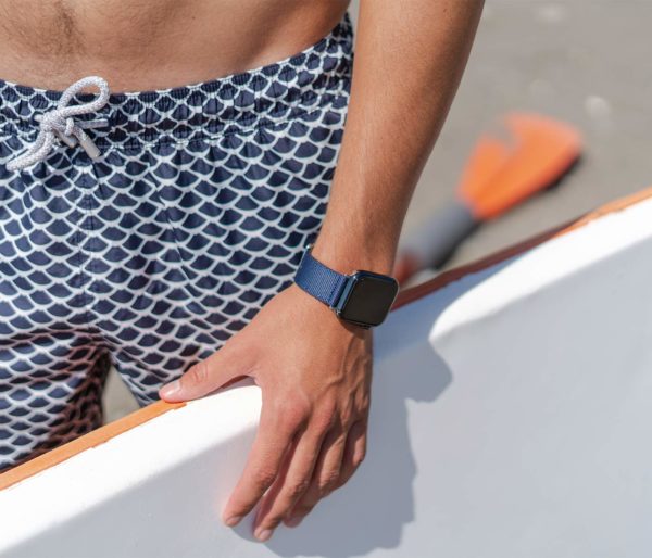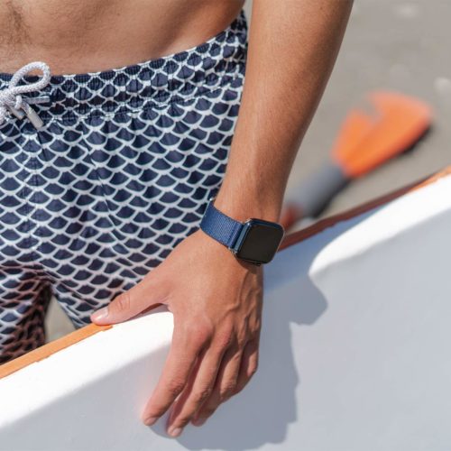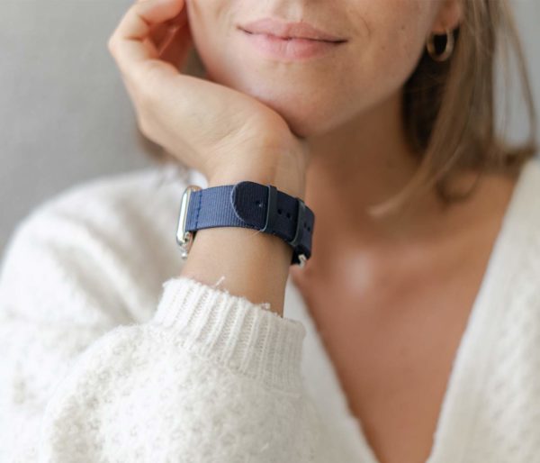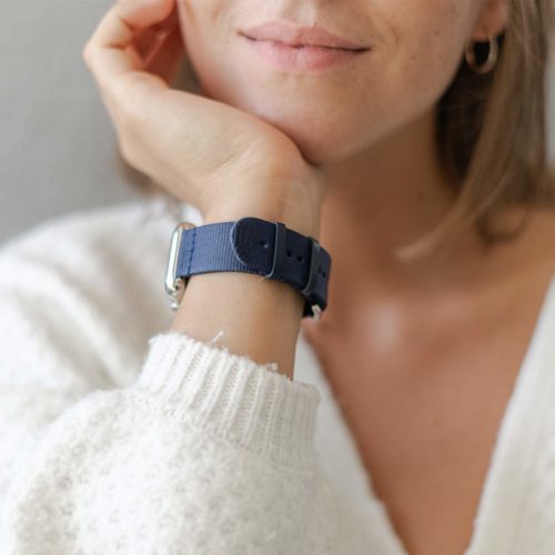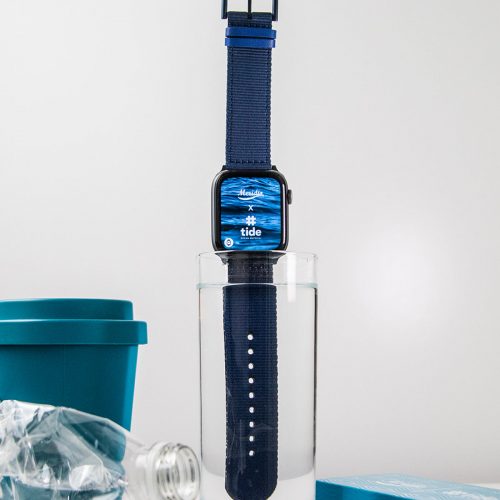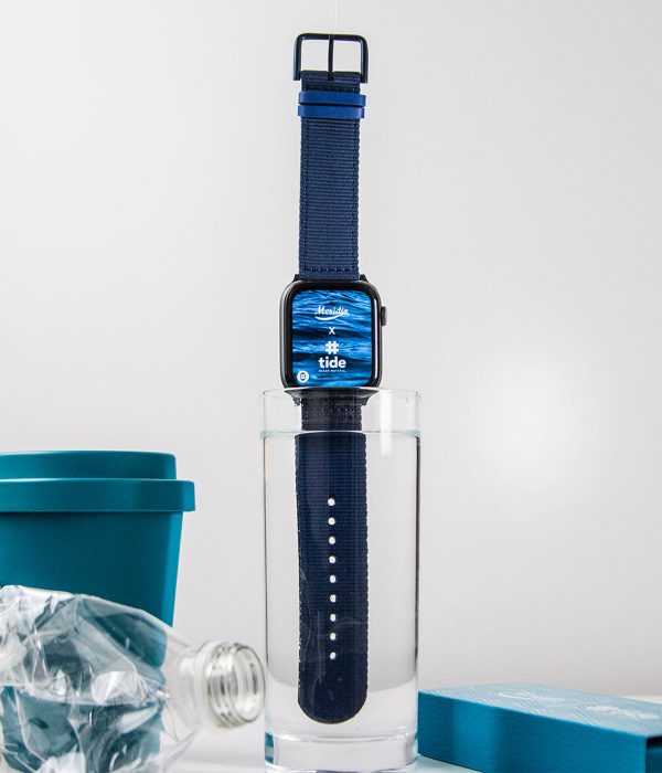 Il cinturino in tessuto Blue Marine per Apple watch fa parte della collezione #TIDE realizzata interamente con plastica riciclata recuperata dal Mar delle Andimane. Dal colore senza tempo, è una scelta perfetta per l’abbigliamento quotidiano e le serate speciali poiché, salvare il pianeta è sempre di moda. È compatibile con Apple Watch serie 8,Ultra e precedenti versioni. Adatto per casse 38/40/41 | 42/44/45/49 mm
