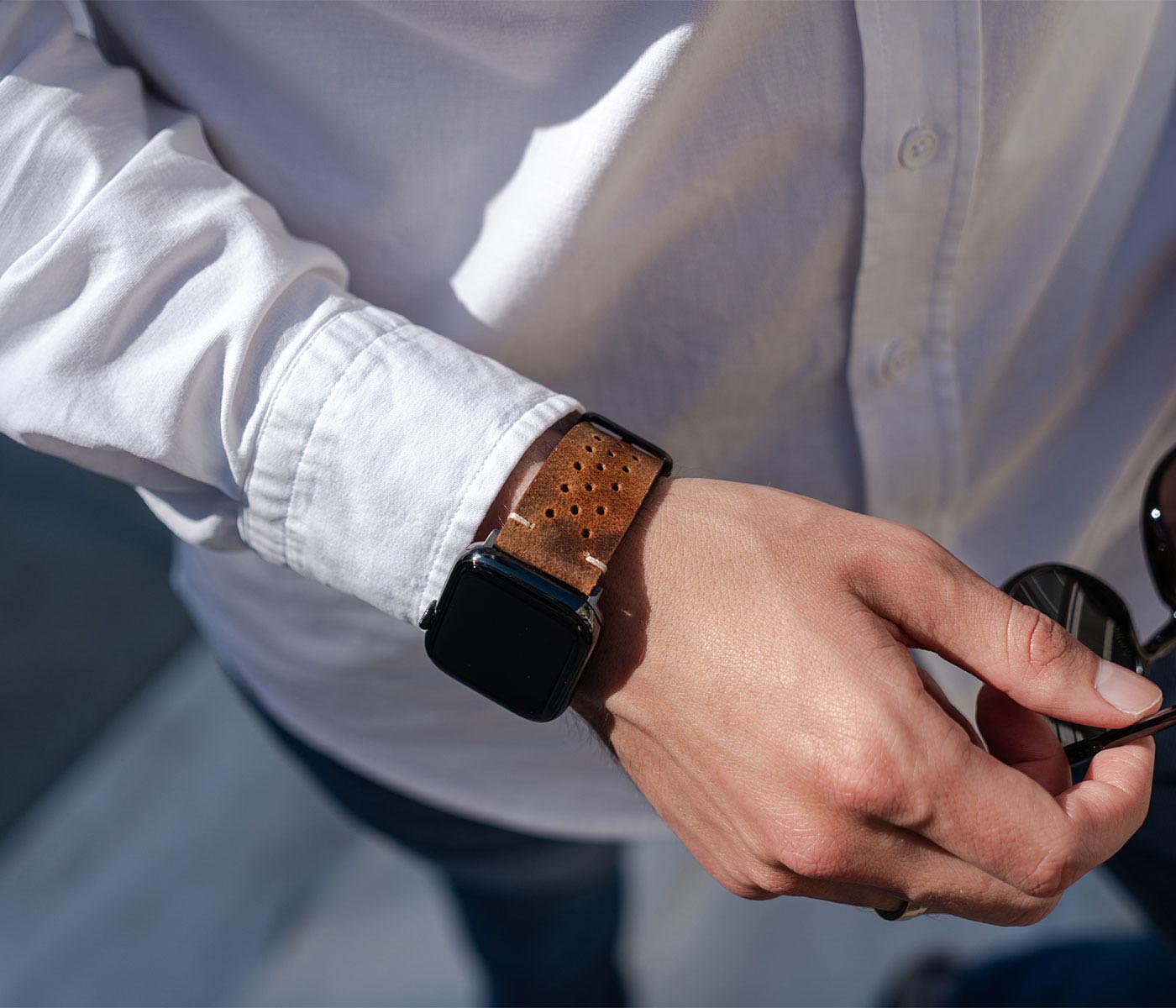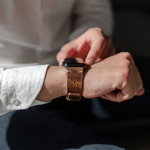 Responsabilità e cura dei propri cari, sono aspetti che ogni capo famiglia deve saper assicurare, e prendersi cura delle persone amate é uno dei migliori doni che un uomo possa offrire. Con la sua calda colorazione, questo cinturino in pelle di vitello italiano offre un carattere deciso al tuo Apple Watch e, i trenta fori su di esso conferiscono la massima traspirabilità. Disponibile per casse 42/44/45/49 mm e 38/40/41mm ed è compatibile con il nuovo AW series 8,Ultra & SE e precedenti versioni