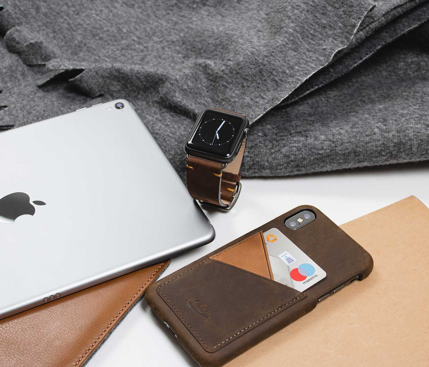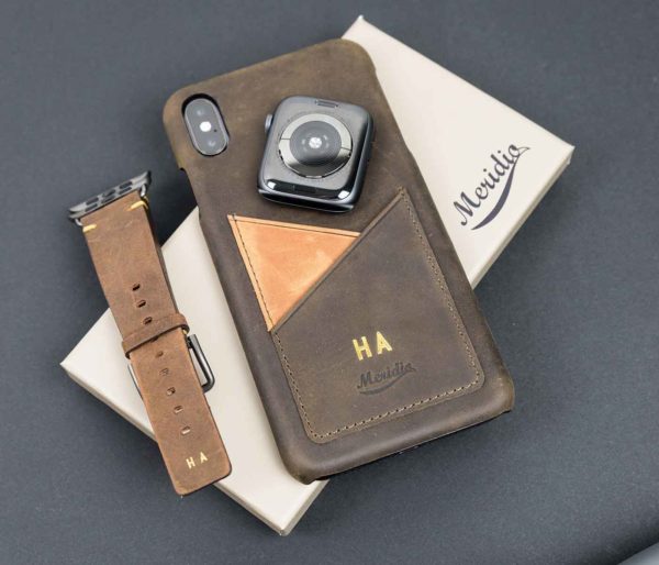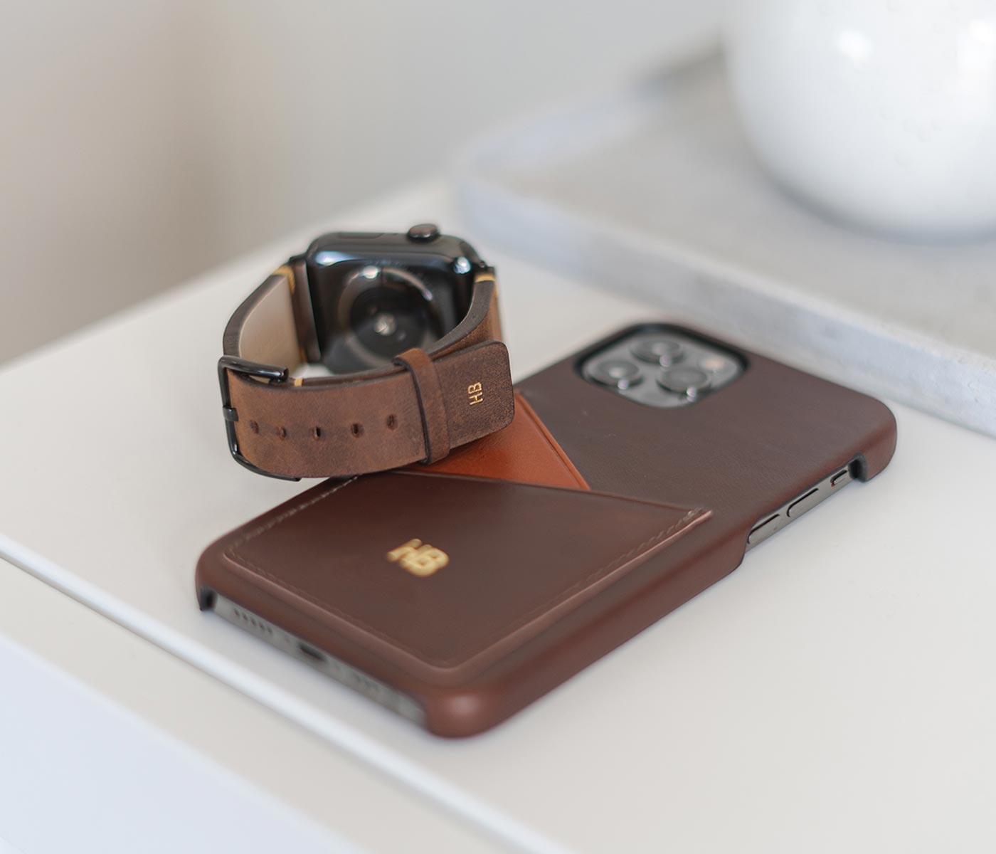 Una combinazione perfetta per un uomo appassionato di tecnologia che non sa resistere al fascino del vintage made in italy. Cover per Iphone e cinturino per apple watch realizzati con la migliore pelle italiana e rifiniture e dettagli sofisticati, questi accessori saranno la migliore risposta alla sua ricerca di lusso ed eleganza