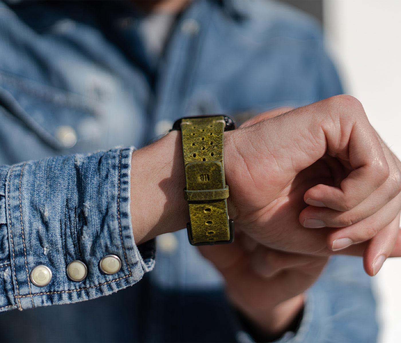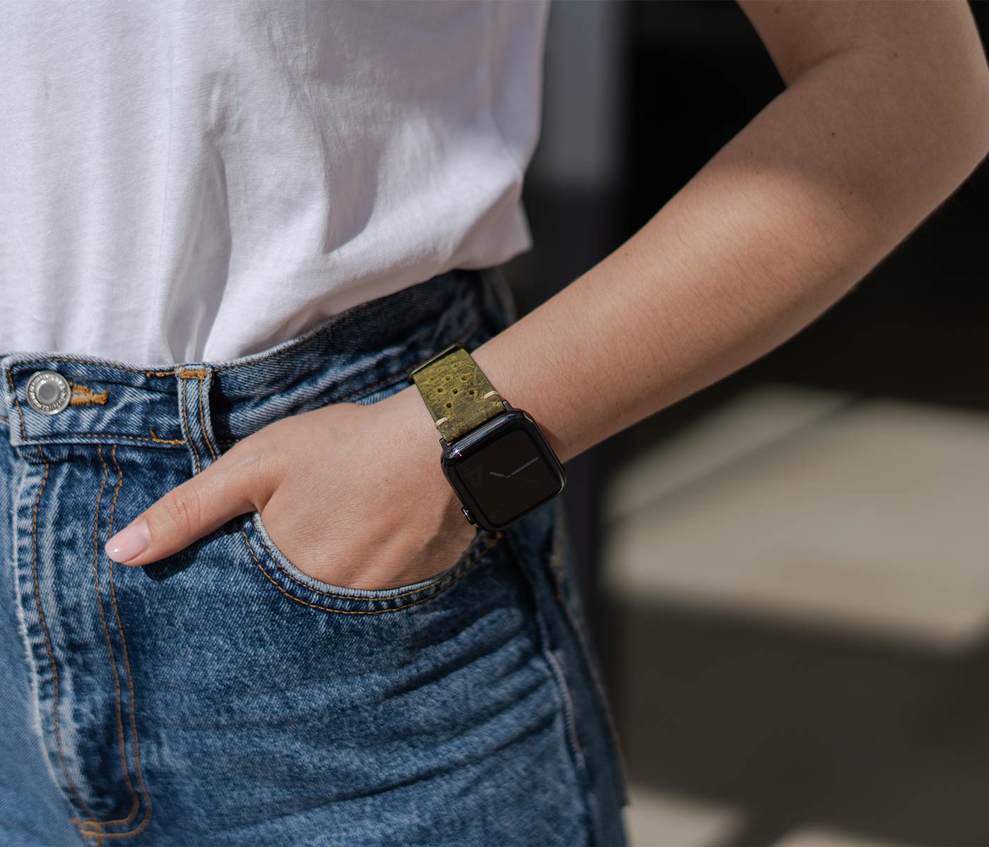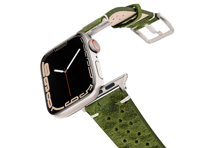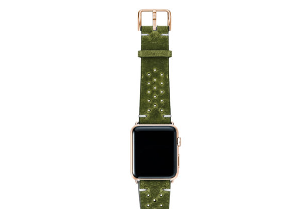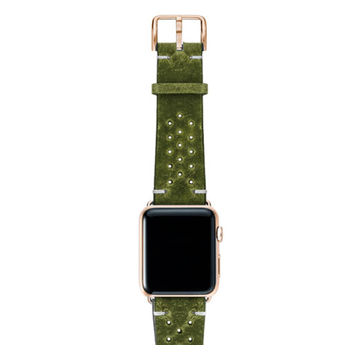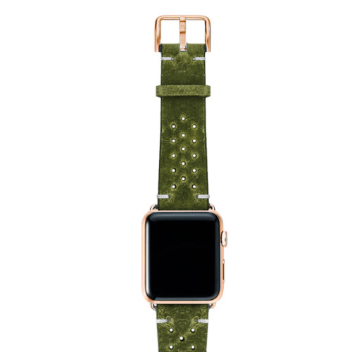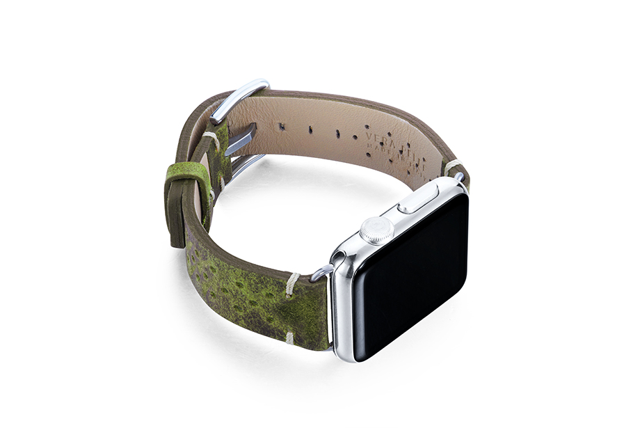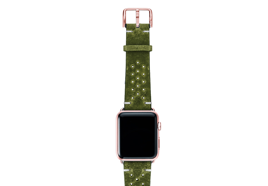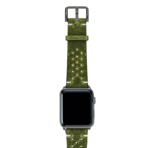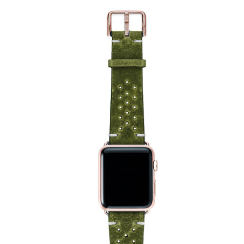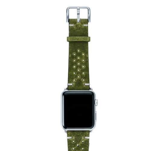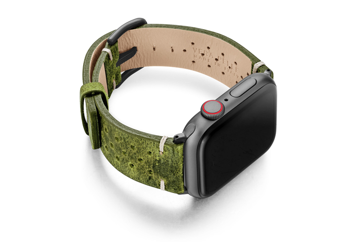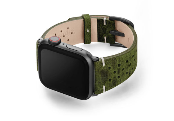 In Italy, green is Hope’s colour, and our desire at Meridio, is to share it with all of you. Be Hopeful having at your wrist this transpirant aged calf leather band enriched by 30 handmade slots. Available only for AW 42/ 44/45/49 mm and it works with new series 8,Ultra & SE and previous 7|6|5|4|3|2|1