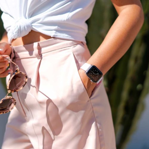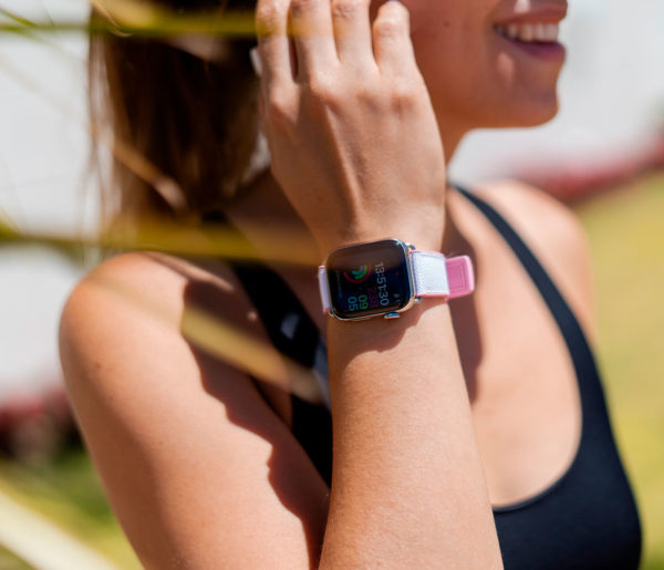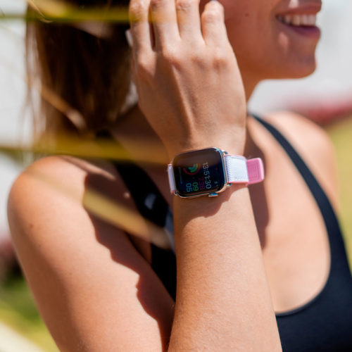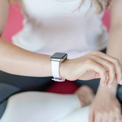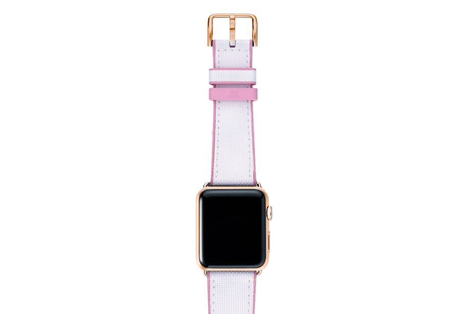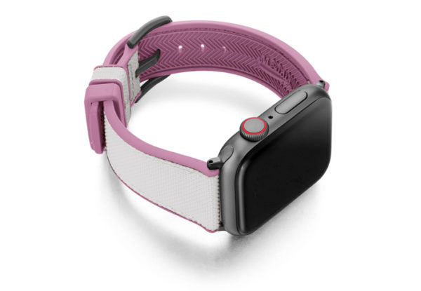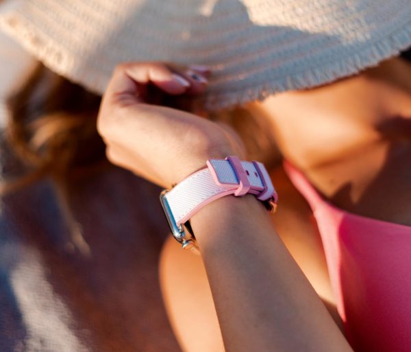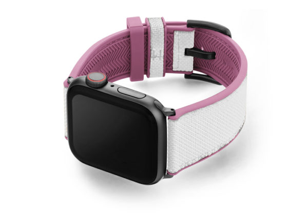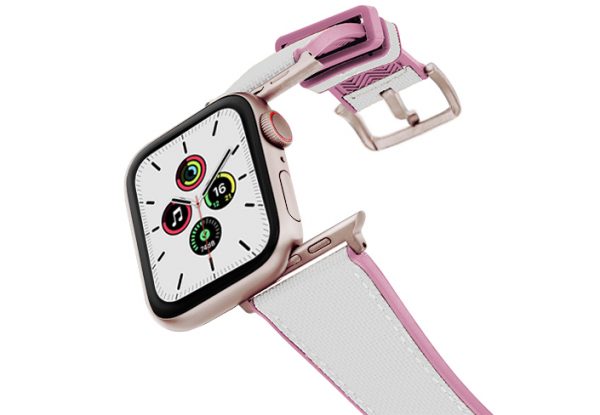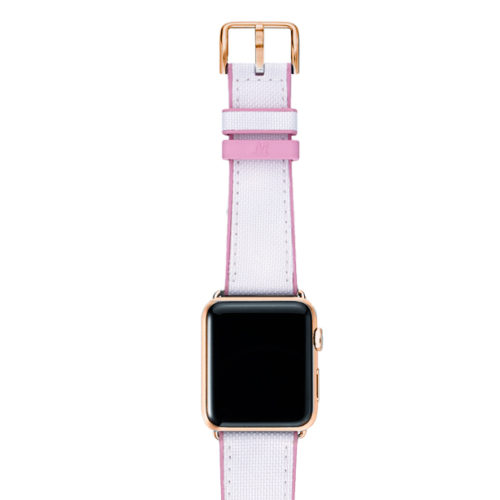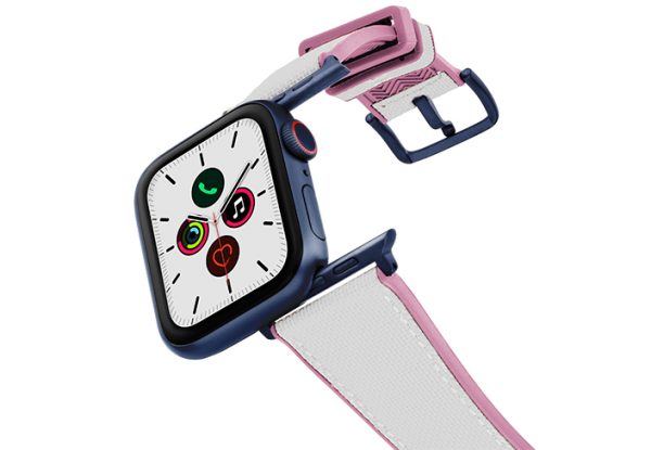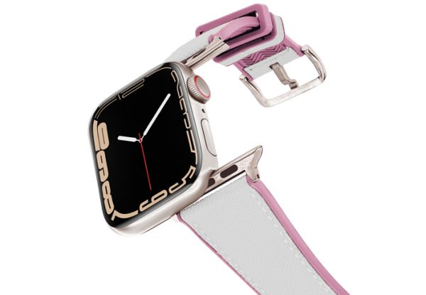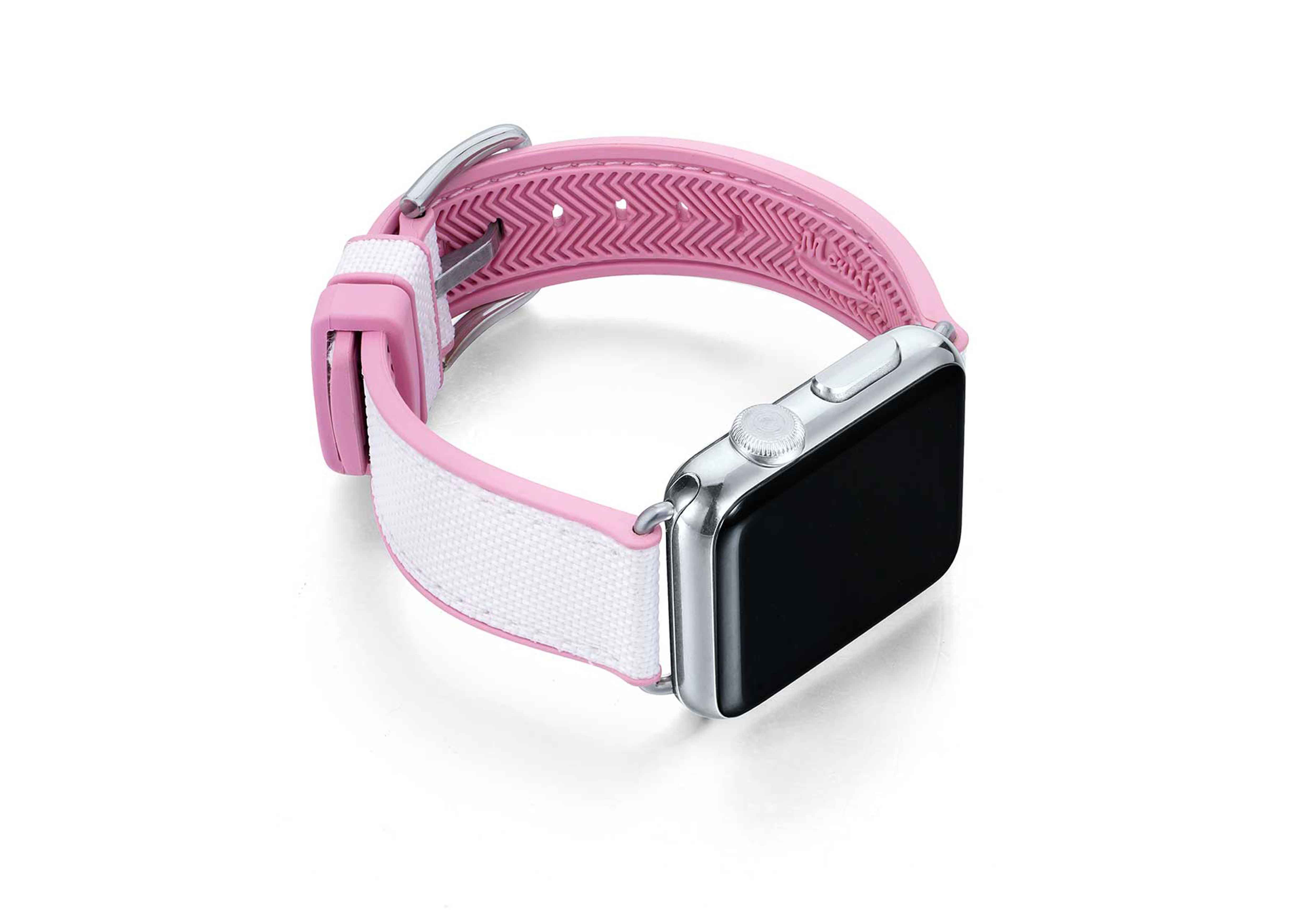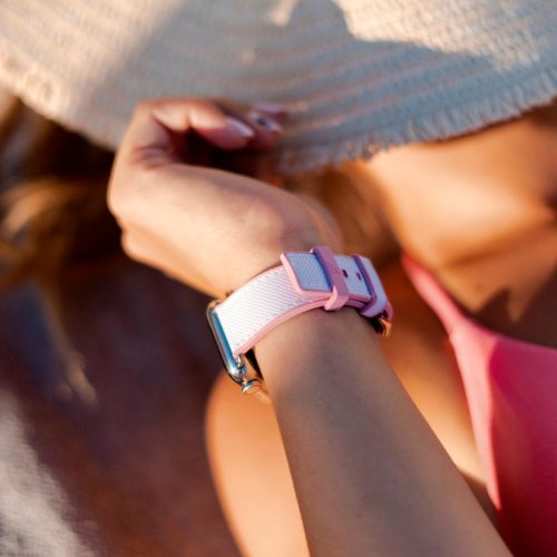 A sophisticated white on top and pink lining 100% natural rubber band that brings to a new level of casual elegance while training or at the beach. Suitable with all AW new series 8 & SE and previous 7|6|5|4|3|2|1 and available with case 38/40/41mm version