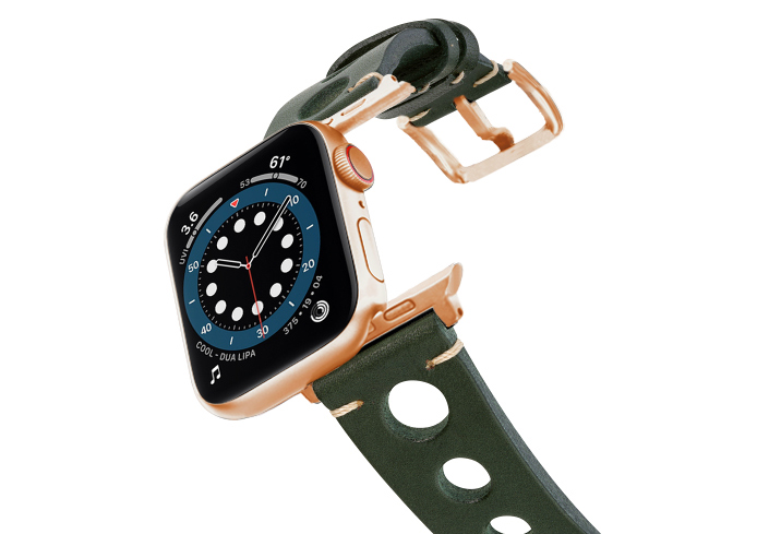 La Dolce Vita è il tema principale su cui si basa la realizzazione di Porta Venezia, collocata in pieno centro a Milano. Il tema ha ispirato la realizzazione di questo cinturino dal colore verde che regala eleganza ed un ulteriore prezzo di unicità ad un accessorio in cuoio 100% Made in Italy con finiture in cotone bianco e doppio passante. Disponibile solo per cassa 42/44/45/49 mm ed adatto ad Apple watch di ultima generazione come la serie 8,Ultra & SE e le precedenti versioni 7|6|5|4|3|2|1