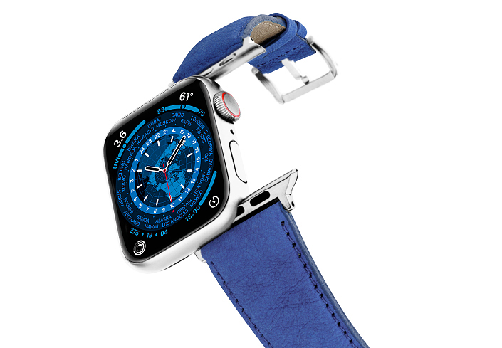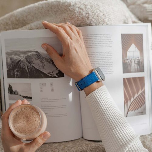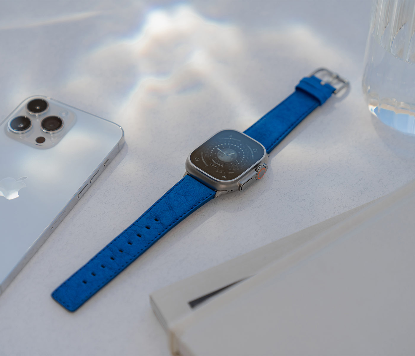 Un blu vibrante in omaggio ai fiumi che vogliamo proteggere. Realizzato per durare nel tempo con materiali naturali ed ecologici. Questo blu pigmentato è pieno di vita ed è perfetto per dare un tocco di colore e di speranza alla routine quotidiana. Come il flusso del fiume è leggero e confortevole, per chi è sempre in evoluzione. 100% Made in Italy, compatibile con Apple watch ULTRA, 8 e serie precedenti. Adatto alle casse 38/40/41 mm e a quelle grandi 42/44/45/49 mm