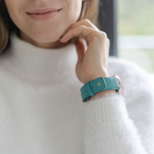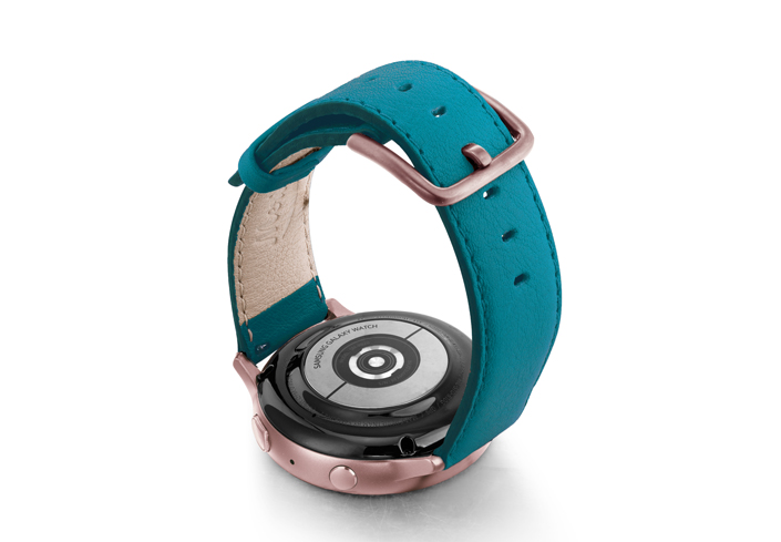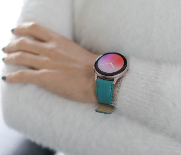 Questo cinturino in turchese è la scelta giusta per un look al passo con le passerelle della moda. Combinato con un abito della stessa nuance Sarà il tocco in più che non ti farà passare inosservato con al polso il tuo Galaxy Watch Active 2|1